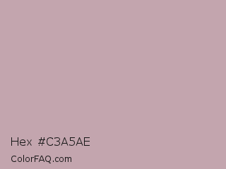 Hex #c3a5ae Color is a light rose color and the nearest color is Silver Pink #c4aead. Hex code #c3a5ae and RGB value is rgb(195,165,174). In RGB color space, this color is composed of 76% red, 65% green, 68% blue, In CMYK color space, this color is composed of 0% cyan, 15% magenta, 11% yellow , 24% black , In HSL color space, this color has a hue angle of 342° , 20% saturation and 71% lightness.