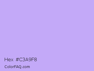 Hex #c3a9f8 Color is a very light indigo color and the nearest color is Pale Violet #cc99ff. Hex code #c3a9f8 and RGB value is rgb(195,169,248). In RGB color space, this color is composed of 76% red, 66% green, 97% blue, In CMYK color space, this color is composed of 21% cyan, 32% magenta, 0% yellow , 3% black , In HSL color space, this color has a hue angle of 260° , 85% saturation and 82% lightness.