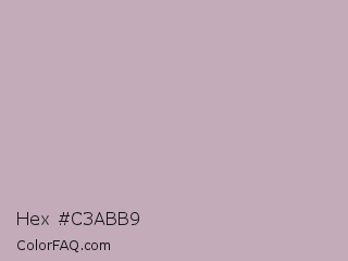 Hex #c3abb9 Color is a light magenta color and the nearest color is Lily #c8aabf. Hex code #c3abb9 and RGB value is rgb(195,171,185). In RGB color space, this color is composed of 76% red, 67% green, 73% blue, In CMYK color space, this color is composed of 0% cyan, 12% magenta, 5% yellow , 24% black , In HSL color space, this color has a hue angle of 325° , 17% saturation and 72% lightness.