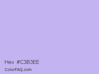 Hex #c3b3ee Color is a very light indigo color and the nearest color is Perfume #d0bef8. Hex code #c3b3ee and RGB value is rgb(195,179,238). In RGB color space, this color is composed of 76% red, 70% green, 93% blue, In CMYK color space, this color is composed of 18% cyan, 25% magenta, 0% yellow , 7% black , In HSL color space, this color has a hue angle of 256° , 63% saturation and 82% lightness.