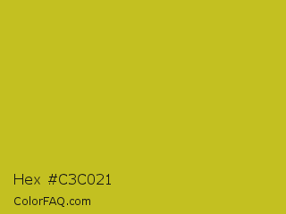 Hex #c3c021 Color is a normal yellow color and the nearest color is Key Lime Pie #bfc921. Hex code #c3c021 and RGB value is rgb(195,192,33). In RGB color space, this color is composed of 76% red, 75% green, 13% blue, In CMYK color space, this color is composed of 0% cyan, 2% magenta, 83% yellow , 24% black , In HSL color space, this color has a hue angle of 59° , 71% saturation and 45% lightness.