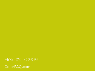 Hex #c3c909 Color is a normal yellow color and the nearest color is Rio Grande #bbd009. Hex code #c3c909 and RGB value is rgb(195,201,9). In RGB color space, this color is composed of 76% red, 79% green, 4% blue, In CMYK color space, this color is composed of 3% cyan, 0% magenta, 96% yellow , 21% black , In HSL color space, this color has a hue angle of 62° , 91% saturation and 41% lightness.