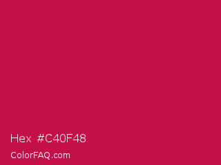 Hex #c40f48 Color is a normal rose color and the nearest color is Pictorial Carmine #c30b4e. Hex code #c40f48 and RGB value is rgb(196,15,72). In RGB color space, this color is composed of 77% red, 6% green, 28% blue, In CMYK color space, this color is composed of 0% cyan, 92% magenta, 63% yellow , 23% black , In HSL color space, this color has a hue angle of 341° , 86% saturation and 41% lightness.