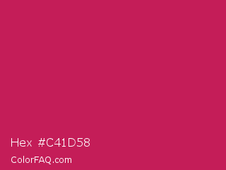 Hex #c41d58 Color is a normal rose color and the nearest color is Rose Red #c21e56. Hex code #c41d58 and RGB value is rgb(196,29,88). In RGB color space, this color is composed of 77% red, 11% green, 35% blue, In CMYK color space, this color is composed of 0% cyan, 85% magenta, 55% yellow , 23% black , In HSL color space, this color has a hue angle of 339° , 74% saturation and 44% lightness.