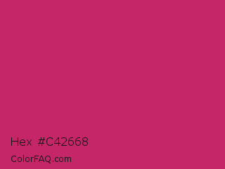 Hex #c42668 Color is a normal rose color and the nearest color is Hibiscus #b6316c. Hex code #c42668 and RGB value is rgb(196,38,104). In RGB color space, this color is composed of 77% red, 15% green, 41% blue, In CMYK color space, this color is composed of 0% cyan, 81% magenta, 47% yellow , 23% black , In HSL color space, this color has a hue angle of 335° , 68% saturation and 46% lightness.