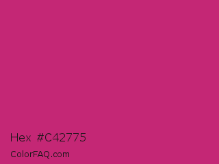 Hex #c42775 Color is a normal rose color and the nearest color is Magenta Dye #ca1f7b. Hex code #c42775 and RGB value is rgb(196,39,117). In RGB color space, this color is composed of 77% red, 15% green, 46% blue, In CMYK color space, this color is composed of 0% cyan, 80% magenta, 40% yellow , 23% black , In HSL color space, this color has a hue angle of 330° , 67% saturation and 46% lightness.