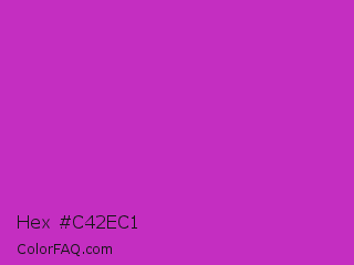 Hex #c42ec1 Color is a normal magenta color and the nearest color is Steel Pink #cc33cc. Hex code #c42ec1 and RGB value is rgb(196,46,193). In RGB color space, this color is composed of 77% red, 18% green, 76% blue, In CMYK color space, this color is composed of 0% cyan, 77% magenta, 2% yellow , 23% black , In HSL color space, this color has a hue angle of 301° , 62% saturation and 47% lightness.