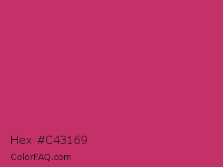 Hex #c43169 Color is a normal rose color and the nearest color is Hibiscus #b6316c. Hex code #c43169 and RGB value is rgb(196,49,105). In RGB color space, this color is composed of 77% red, 19% green, 41% blue, In CMYK color space, this color is composed of 0% cyan, 75% magenta, 46% yellow , 23% black , In HSL color space, this color has a hue angle of 337° , 60% saturation and 48% lightness.