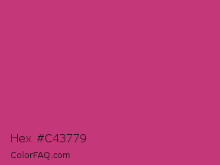 Hex #c43779 Color is a normal rose color and the nearest color is Fuchsia Purple #cc397b. Hex code #c43779 and RGB value is rgb(196,55,121). In RGB color space, this color is composed of 77% red, 22% green, 47% blue, In CMYK color space, this color is composed of 0% cyan, 72% magenta, 38% yellow , 23% black , In HSL color space, this color has a hue angle of 332° , 56% saturation and 49% lightness.