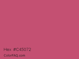 Hex #c45072 Color is a normal rose color and the nearest color is Fuchsia Rose #c74375. Hex code #c45072 and RGB value is rgb(196,80,114). In RGB color space, this color is composed of 77% red, 31% green, 45% blue, In CMYK color space, this color is composed of 0% cyan, 59% magenta, 42% yellow , 23% black , In HSL color space, this color has a hue angle of 342° , 50% saturation and 54% lightness.