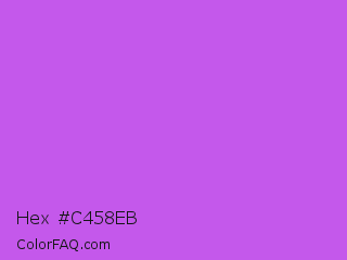Hex #c458eb Color is a light purple color and the nearest color is Medium Orchid #ba55d3. Hex code #c458eb and RGB value is rgb(196,88,235). In RGB color space, this color is composed of 77% red, 35% green, 92% blue, In CMYK color space, this color is composed of 17% cyan, 63% magenta, 0% yellow , 8% black , In HSL color space, this color has a hue angle of 284° , 79% saturation and 63% lightness.