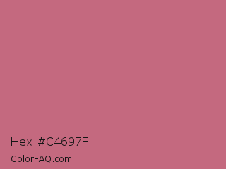 Hex #c4697f Color is a normal red color and the nearest color is Cinnamon Satin #cd607e. Hex code #c4697f and RGB value is rgb(196,105,127). In RGB color space, this color is composed of 77% red, 41% green, 50% blue, In CMYK color space, this color is composed of 0% cyan, 46% magenta, 35% yellow , 23% black , In HSL color space, this color has a hue angle of 345° , 44% saturation and 59% lightness.