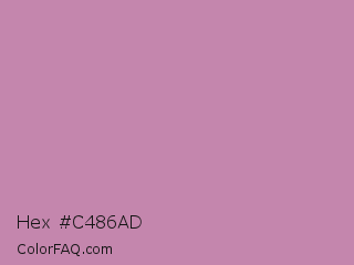Hex #c486ad Color is a light magenta color and the nearest color is Viola #cb8fa9. Hex code #c486ad and RGB value is rgb(196,134,173). In RGB color space, this color is composed of 77% red, 53% green, 68% blue, In CMYK color space, this color is composed of 0% cyan, 32% magenta, 12% yellow , 23% black , In HSL color space, this color has a hue angle of 322° , 34% saturation and 65% lightness.