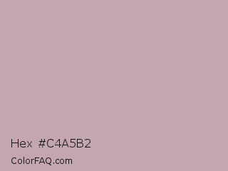 Hex #c4a5b2 Color is a light rose color and the nearest color is Silver Pink #c4aead. Hex code #c4a5b2 and RGB value is rgb(196,165,178). In RGB color space, this color is composed of 77% red, 65% green, 70% blue, In CMYK color space, this color is composed of 0% cyan, 16% magenta, 9% yellow , 23% black , In HSL color space, this color has a hue angle of 335° , 21% saturation and 71% lightness.
