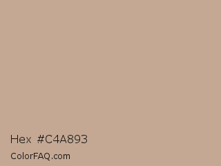 Hex #c4a893 Color is a light orange color and the nearest color is Indian Khaki #c3b091. Hex code #c4a893 and RGB value is rgb(196,168,147). In RGB color space, this color is composed of 77% red, 66% green, 58% blue, In CMYK color space, this color is composed of 0% cyan, 14% magenta, 25% yellow , 23% black , In HSL color space, this color has a hue angle of 26° , 29% saturation and 67% lightness.