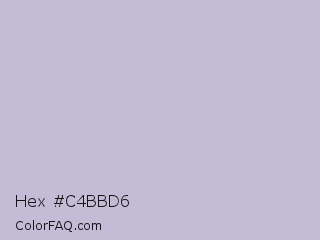 Hex #c4bbd6 Color is a light indigo color and the nearest color is Blue Haze #bfbed8. Hex code #c4bbd6 and RGB value is rgb(196,187,214). In RGB color space, this color is composed of 77% red, 73% green, 84% blue, In CMYK color space, this color is composed of 8% cyan, 13% magenta, 0% yellow , 16% black , In HSL color space, this color has a hue angle of 260° , 25% saturation and 79% lightness.