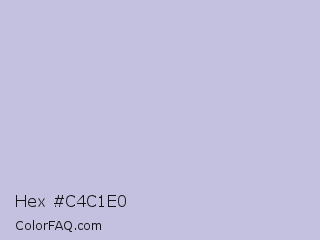 Hex #c4c1e0 Color is a very light indigo color and the nearest color is Blue Haze #bfbed8. Hex code #c4c1e0 and RGB value is rgb(196,193,224). In RGB color space, this color is composed of 77% red, 76% green, 88% blue, In CMYK color space, this color is composed of 13% cyan, 14% magenta, 0% yellow , 12% black , In HSL color space, this color has a hue angle of 246° , 33% saturation and 82% lightness.