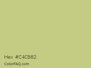 Hex #c4cb82 Color is a light yellow color and the nearest color is Pine Glade #c7cd90. Hex code #c4cb82 and RGB value is rgb(196,203,130). In RGB color space, this color is composed of 77% red, 80% green, 51% blue, In CMYK color space, this color is composed of 3% cyan, 0% magenta, 36% yellow , 20% black , In HSL color space, this color has a hue angle of 66° , 41% saturation and 65% lightness.