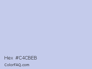 Hex #c4cbeb Color is a very light blue color and the nearest color is Periwinkle Gray #c3cde6. Hex code #c4cbeb and RGB value is rgb(196,203,235). In RGB color space, this color is composed of 77% red, 80% green, 92% blue, In CMYK color space, this color is composed of 17% cyan, 14% magenta, 0% yellow , 8% black , In HSL color space, this color has a hue angle of 229° , 49% saturation and 85% lightness.
