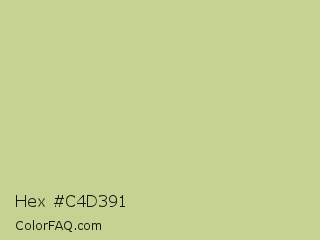 Hex #c4d391 Color is a light lime color and the nearest color is Pine Glade #c7cd90. Hex code #c4d391 and RGB value is rgb(196,211,145). In RGB color space, this color is composed of 77% red, 83% green, 57% blue, In CMYK color space, this color is composed of 7% cyan, 0% magenta, 31% yellow , 17% black , In HSL color space, this color has a hue angle of 74° , 43% saturation and 70% lightness.