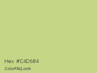 Hex #c4d684 Color is a light lime color and the nearest color is Medium Spring Bud #c9dc87. Hex code #c4d684 and RGB value is rgb(196,214,132). In RGB color space, this color is composed of 77% red, 84% green, 52% blue, In CMYK color space, this color is composed of 8% cyan, 0% magenta, 38% yellow , 16% black , In HSL color space, this color has a hue angle of 73° , 50% saturation and 68% lightness.