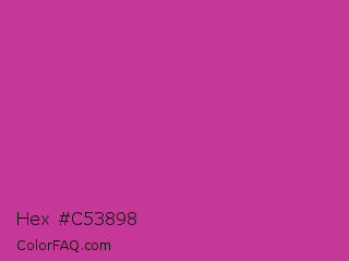 Hex #c53898 Color is a normal magenta color and the nearest color is Royal Fuchsia #ca2c92. Hex code #c53898 and RGB value is rgb(197,56,152). In RGB color space, this color is composed of 77% red, 22% green, 60% blue, In CMYK color space, this color is composed of 0% cyan, 72% magenta, 23% yellow , 23% black , In HSL color space, this color has a hue angle of 319° , 56% saturation and 50% lightness.