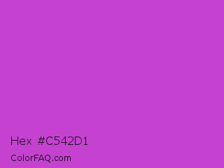 Hex #c542d1 Color is a normal magenta color and the nearest color is Steel Pink #cc33cc. Hex code #c542d1 and RGB value is rgb(197,66,209). In RGB color space, this color is composed of 77% red, 26% green, 82% blue, In CMYK color space, this color is composed of 6% cyan, 68% magenta, 0% yellow , 18% black , In HSL color space, this color has a hue angle of 295° , 61% saturation and 54% lightness.