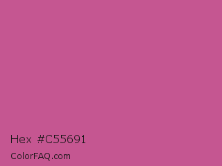 Hex #c55691 Color is a normal rose color and the nearest color is Mulberry #c54b8c. Hex code #c55691 and RGB value is rgb(197,86,145). In RGB color space, this color is composed of 77% red, 34% green, 57% blue, In CMYK color space, this color is composed of 0% cyan, 56% magenta, 26% yellow , 23% black , In HSL color space, this color has a hue angle of 328° , 49% saturation and 55% lightness.