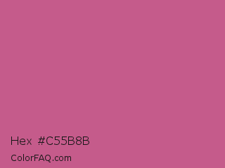 Hex #c55b8b Color is a normal rose color and the nearest color is Mulberry #c54b8c. Hex code #c55b8b and RGB value is rgb(197,91,139). In RGB color space, this color is composed of 77% red, 36% green, 55% blue, In CMYK color space, this color is composed of 0% cyan, 54% magenta, 29% yellow , 23% black , In HSL color space, this color has a hue angle of 333° , 48% saturation and 56% lightness.