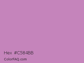 Hex #c584bb Color is a light magenta color and the nearest color is African Violet #b284be. Hex code #c584bb and RGB value is rgb(197,132,187). In RGB color space, this color is composed of 77% red, 52% green, 73% blue, In CMYK color space, this color is composed of 0% cyan, 33% magenta, 5% yellow , 23% black , In HSL color space, this color has a hue angle of 309° , 36% saturation and 65% lightness.