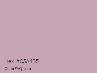 Hex #c5a4b5 Color is a light rose color and the nearest color is Lily #c8aabf. Hex code #c5a4b5 and RGB value is rgb(197,164,181). In RGB color space, this color is composed of 77% red, 64% green, 71% blue, In CMYK color space, this color is composed of 0% cyan, 17% magenta, 8% yellow , 23% black , In HSL color space, this color has a hue angle of 329° , 22% saturation and 71% lightness.