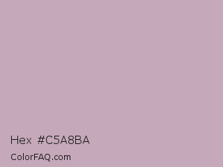 Hex #c5a8ba Color is a light magenta color and the nearest color is Lily #c8aabf. Hex code #c5a8ba and RGB value is rgb(197,168,186). In RGB color space, this color is composed of 77% red, 66% green, 73% blue, In CMYK color space, this color is composed of 0% cyan, 15% magenta, 6% yellow , 23% black , In HSL color space, this color has a hue angle of 323° , 20% saturation and 72% lightness.