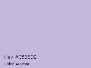 Hex #c5b8de Color is a light violet color and the nearest color is Blue Haze #bfbed8. Hex code #c5b8de and RGB value is rgb(197,184,222). In RGB color space, this color is composed of 77% red, 72% green, 87% blue, In CMYK color space, this color is composed of 11% cyan, 17% magenta, 0% yellow , 13% black , In HSL color space, this color has a hue angle of 261° , 37% saturation and 80% lightness.