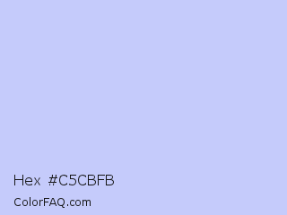 Hex #c5cbfb Color is a very light blue color and the nearest color is Periwinkle #ccccff. Hex code #c5cbfb and RGB value is rgb(197,203,251). In RGB color space, this color is composed of 77% red, 80% green, 98% blue, In CMYK color space, this color is composed of 22% cyan, 19% magenta, 0% yellow , 2% black , In HSL color space, this color has a hue angle of 233° , 87% saturation and 88% lightness.