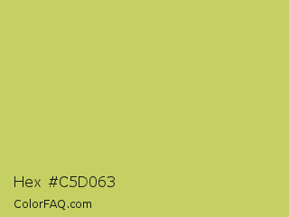 Hex #c5d063 Color is a normal yellow color and the nearest color is June Bud #bdda57. Hex code #c5d063 and RGB value is rgb(197,208,99). In RGB color space, this color is composed of 77% red, 82% green, 39% blue, In CMYK color space, this color is composed of 5% cyan, 0% magenta, 52% yellow , 18% black , In HSL color space, this color has a hue angle of 66° , 54% saturation and 60% lightness.