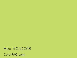 Hex #c5dc68 Color is a light lime color and the nearest color is Yellow Green #c5e17a. Hex code #c5dc68 and RGB value is rgb(197,220,104). In RGB color space, this color is composed of 77% red, 86% green, 41% blue, In CMYK color space, this color is composed of 10% cyan, 0% magenta, 53% yellow , 14% black , In HSL color space, this color has a hue angle of 72° , 62% saturation and 64% lightness.