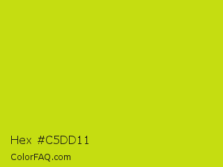 Hex #c5dd11 Color is a normal yellow color and the nearest color is Bitter Lemon #cae00d. Hex code #c5dd11 and RGB value is rgb(197,221,17). In RGB color space, this color is composed of 77% red, 87% green, 7% blue, In CMYK color space, this color is composed of 11% cyan, 0% magenta, 92% yellow , 13% black , In HSL color space, this color has a hue angle of 67° , 86% saturation and 47% lightness.