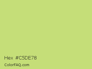 Hex #c5de78 Color is a light lime color and the nearest color is Yellow Green #c5e17a. Hex code #c5de78 and RGB value is rgb(197,222,120). In RGB color space, this color is composed of 77% red, 87% green, 47% blue, In CMYK color space, this color is composed of 11% cyan, 0% magenta, 46% yellow , 13% black , In HSL color space, this color has a hue angle of 75° , 61% saturation and 67% lightness.
