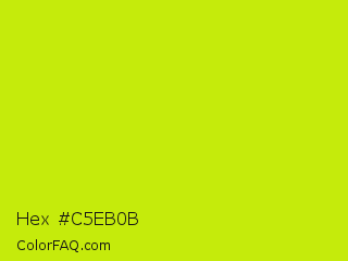 Hex #c5eb0b Color is a normal yellow color and the nearest color is Las Palmas #c6e610. Hex code #c5eb0b and RGB value is rgb(197,235,11). In RGB color space, this color is composed of 77% red, 92% green, 4% blue, In CMYK color space, this color is composed of 16% cyan, 0% magenta, 95% yellow , 8% black , In HSL color space, this color has a hue angle of 70° , 91% saturation and 48% lightness.