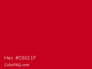 Hex #c6011f Color is a normal red color and the nearest color is Monza #c7031e. Hex code #c6011f and RGB value is rgb(198,1,31). In RGB color space, this color is composed of 78% red, 0% green, 12% blue, In CMYK color space, this color is composed of 0% cyan, 99% magenta, 84% yellow , 22% black , In HSL color space, this color has a hue angle of 351° , 99% saturation and 39% lightness.