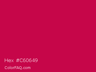 Hex #c60649 Color is a normal rose color and the nearest color is Pictorial Carmine #c30b4e. Hex code #c60649 and RGB value is rgb(198,6,73). In RGB color space, this color is composed of 78% red, 2% green, 29% blue, In CMYK color space, this color is composed of 0% cyan, 97% magenta, 63% yellow , 22% black , In HSL color space, this color has a hue angle of 339° , 94% saturation and 40% lightness.