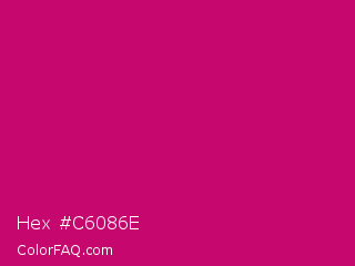 Hex #c6086e Color is a normal rose color and the nearest color is Dogwood Rose #d71868. Hex code #c6086e and RGB value is rgb(198,8,110). In RGB color space, this color is composed of 78% red, 3% green, 43% blue, In CMYK color space, this color is composed of 0% cyan, 96% magenta, 44% yellow , 22% black , In HSL color space, this color has a hue angle of 328° , 92% saturation and 40% lightness.