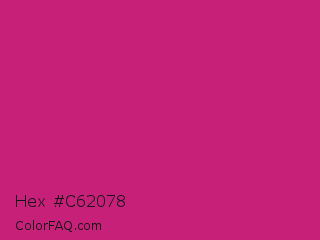 Hex #c62078 Color is a normal rose color and the nearest color is Magenta Dye #ca1f7b. Hex code #c62078 and RGB value is rgb(198,32,120). In RGB color space, this color is composed of 78% red, 13% green, 47% blue, In CMYK color space, this color is composed of 0% cyan, 84% magenta, 39% yellow , 22% black , In HSL color space, this color has a hue angle of 328° , 72% saturation and 45% lightness.