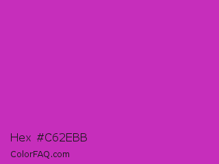 Hex #c62ebb Color is a normal magenta color and the nearest color is Steel Pink #cc33cc. Hex code #c62ebb and RGB value is rgb(198,46,187). In RGB color space, this color is composed of 78% red, 18% green, 73% blue, In CMYK color space, this color is composed of 0% cyan, 77% magenta, 6% yellow , 22% black , In HSL color space, this color has a hue angle of 304° , 62% saturation and 48% lightness.