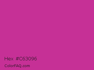 Hex #c63096 Color is a normal magenta color and the nearest color is Royal Fuchsia #ca2c92. Hex code #c63096 and RGB value is rgb(198,48,150). In RGB color space, this color is composed of 78% red, 19% green, 59% blue, In CMYK color space, this color is composed of 0% cyan, 76% magenta, 24% yellow , 22% black , In HSL color space, this color has a hue angle of 319° , 61% saturation and 48% lightness.