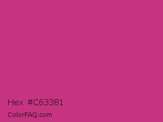 Hex #c63381 Color is a normal rose color and the nearest color is Fuchsia Purple #cc397b. Hex code #c63381 and RGB value is rgb(198,51,129). In RGB color space, this color is composed of 78% red, 20% green, 51% blue, In CMYK color space, this color is composed of 0% cyan, 74% magenta, 35% yellow , 22% black , In HSL color space, this color has a hue angle of 328° , 59% saturation and 49% lightness.