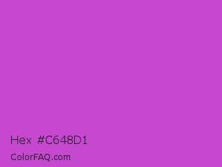 Hex #c648d1 Color is a normal magenta color and the nearest color is Medium Orchid #ba55d3. Hex code #c648d1 and RGB value is rgb(198,72,209). In RGB color space, this color is composed of 78% red, 28% green, 82% blue, In CMYK color space, this color is composed of 5% cyan, 66% magenta, 0% yellow , 18% black , In HSL color space, this color has a hue angle of 295° , 60% saturation and 55% lightness.