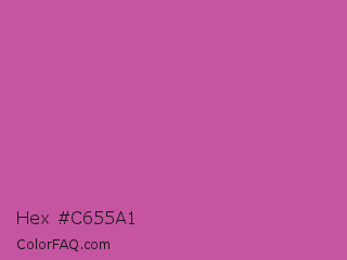 Hex #c655a1 Color is a normal magenta color and the nearest color is Mulberry #c54b8c. Hex code #c655a1 and RGB value is rgb(198,85,161). In RGB color space, this color is composed of 78% red, 33% green, 63% blue, In CMYK color space, this color is composed of 0% cyan, 57% magenta, 19% yellow , 22% black , In HSL color space, this color has a hue angle of 320° , 50% saturation and 55% lightness.
