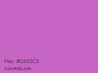Hex #c665c3 Color is a normal magenta color and the nearest color is Fuchsia Pink #c154c1. Hex code #c665c3 and RGB value is rgb(198,101,195). In RGB color space, this color is composed of 78% red, 40% green, 76% blue, In CMYK color space, this color is composed of 0% cyan, 49% magenta, 2% yellow , 22% black , In HSL color space, this color has a hue angle of 302° , 46% saturation and 59% lightness.
