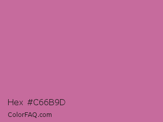 Hex #c66b9d Color is a normal magenta color and the nearest color is Hopbush #d06da1. Hex code #c66b9d and RGB value is rgb(198,107,157). In RGB color space, this color is composed of 78% red, 42% green, 62% blue, In CMYK color space, this color is composed of 0% cyan, 46% magenta, 21% yellow , 22% black , In HSL color space, this color has a hue angle of 327° , 44% saturation and 60% lightness.